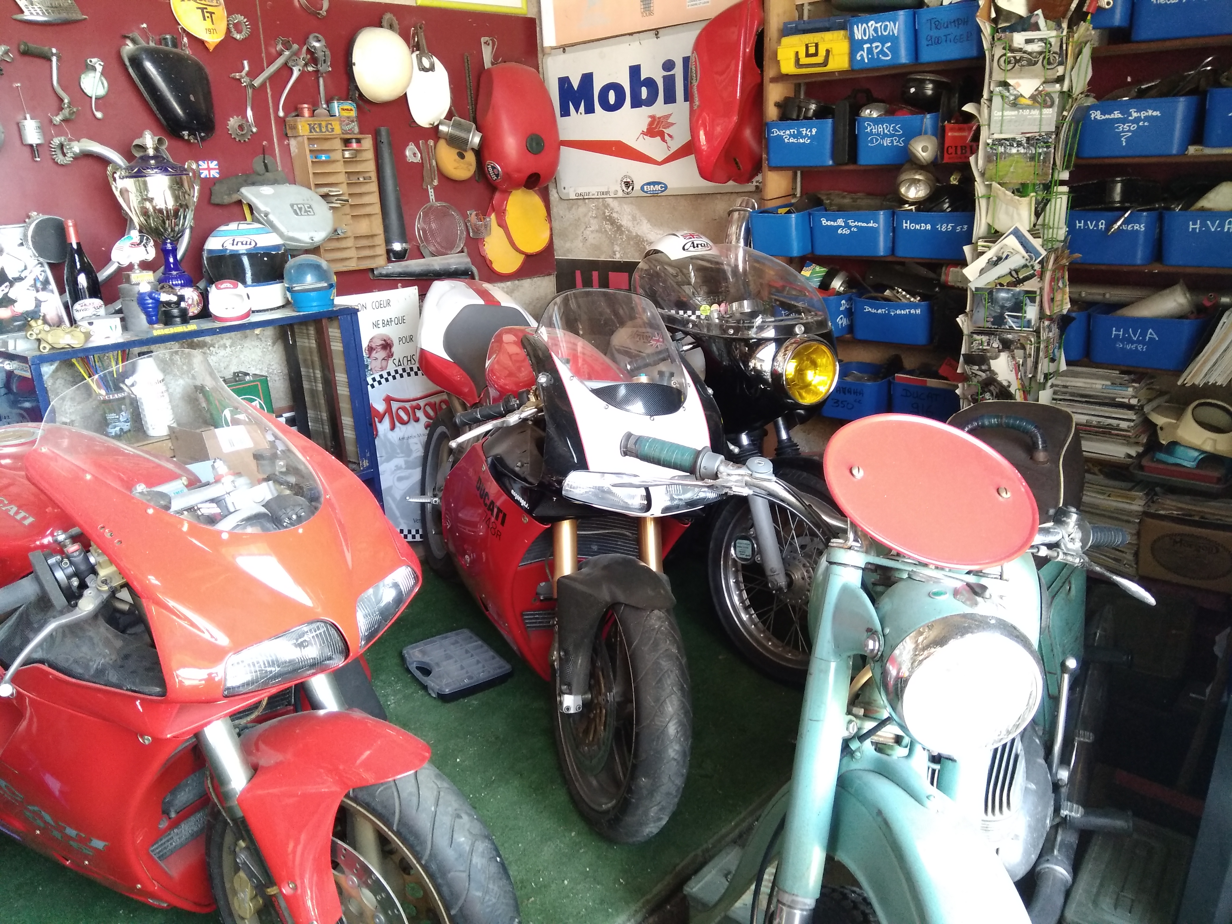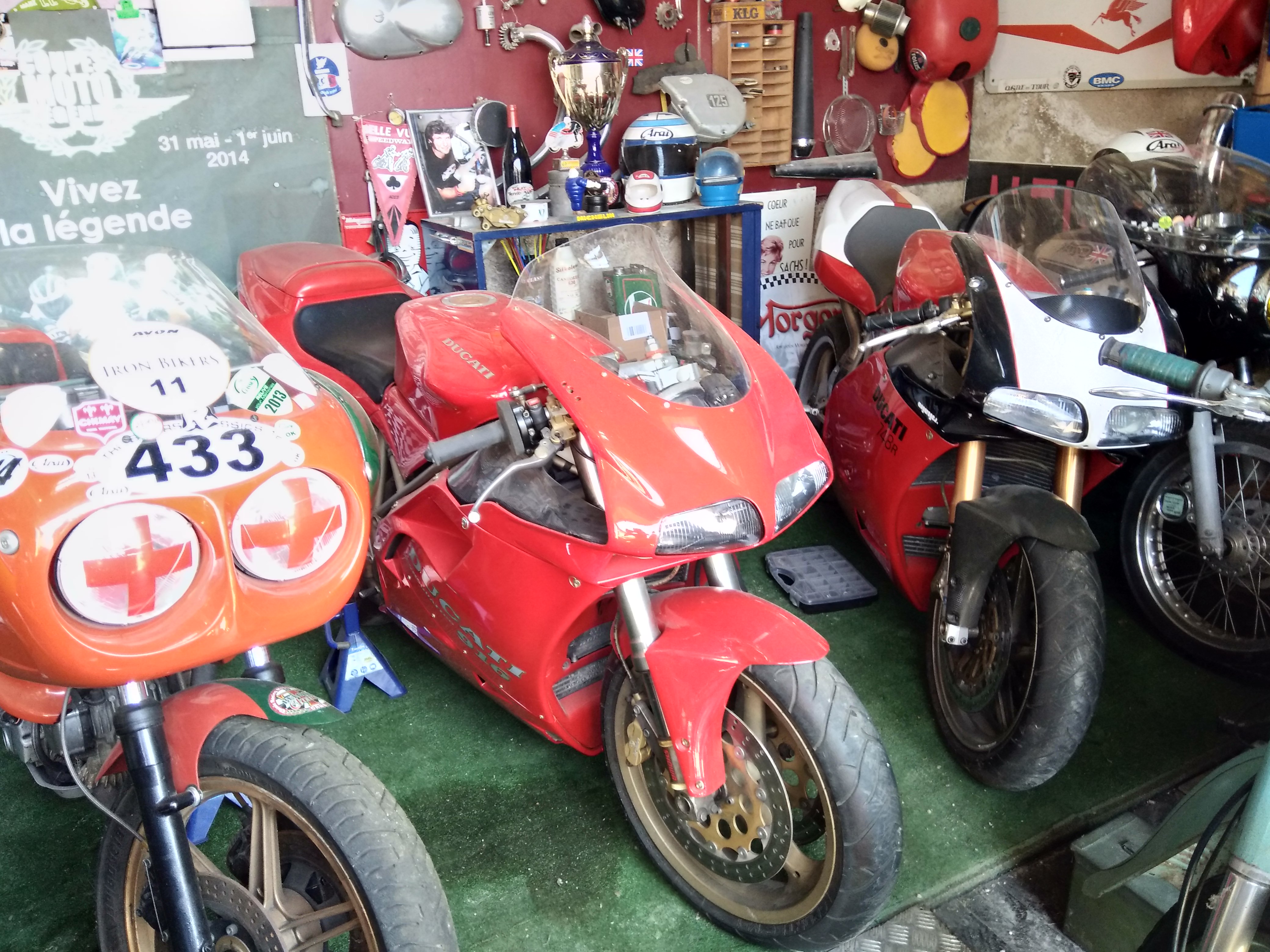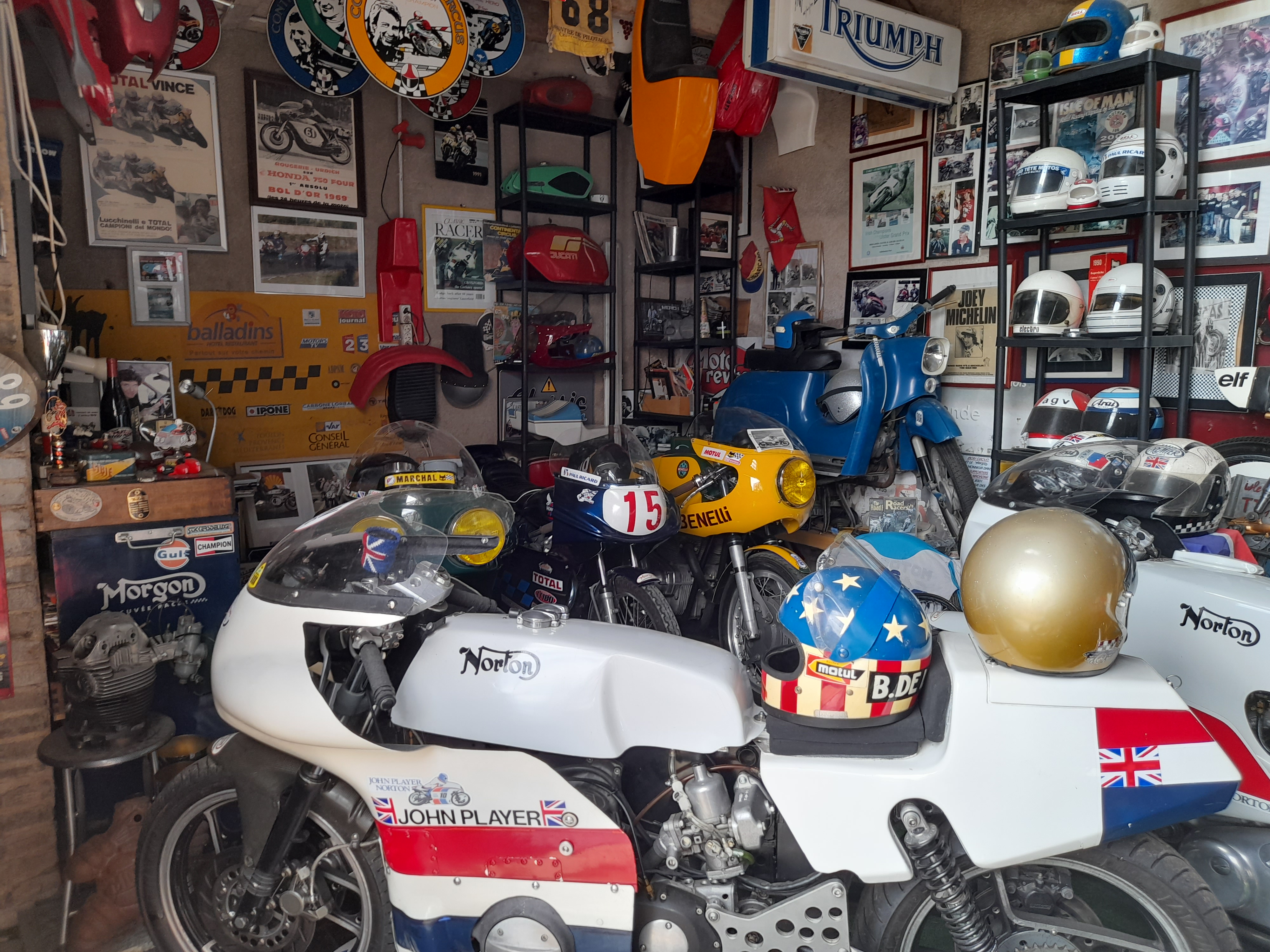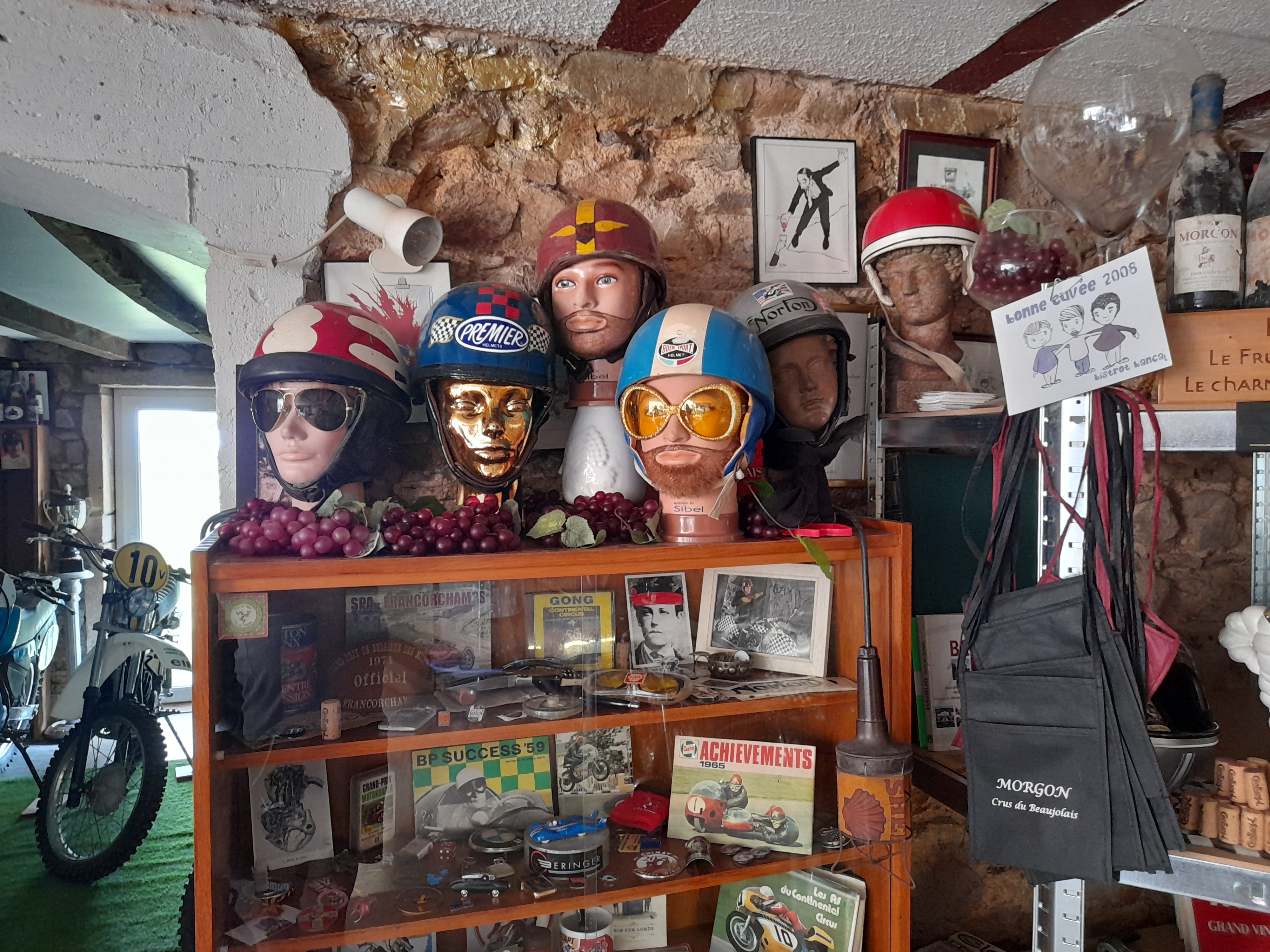 un lieu que tous motards devraient connaitre! au milieu de motos de collection Norton, Ducati, Benelli on peut y déguster la Cuvée Morgon Racer!
